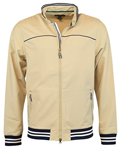-. Binding : Apparel -. Brand : Tommy Hilfiger -. Department : mens -. Feature : 100% polyester. Machine washable. Imported. / Full zip front with two zip-closure pockets at waist. / Ribbed striped collar, sleeve cuffs and hem. / Embroidered Tommy Hilfiger flag logo on back shoulder. -. ProductGroup : Apparel -. ProductTypeName : OUTERWEAR -. Title : Tommy Hilfiger Men's Linton Double Weave Wind Golf Jacket