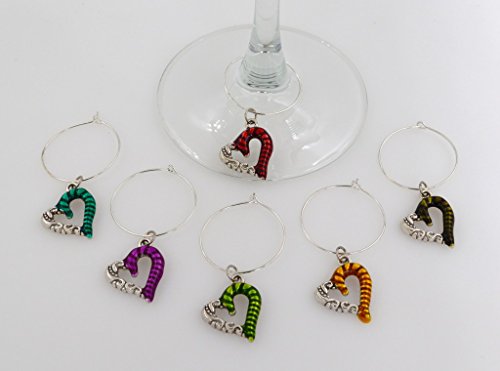 -. Feature : This set of 6 wine glass charms is decorated with metal and enamel heart charms to easily identify each glass. / Charm colors include: red, yellow, light green, dark green, black and purple. / Each heart is 7/8" long and 5/8" wide. / Wine glass charm rings are 25mm and easily fit most wine glasses. / This set comes packaged in a Black Velour Gift Bag - making it an amazing present or favor for a hostess, housewarming, wedding, bridal shower or bachelorette party