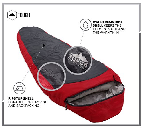 All Season XL Mummy Sleeping Bag - Perfect for Camping, Hiking, Backpacking & Travel. Comfort Temperature Range of 32-60°F. Fits Adults up to 6’6”. Tough Ripstop Waterproof Shell & High-Loft Fill