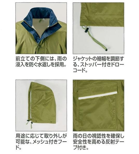 | 素材・材質 | ポリエステル100%(PUコーティング) ライナー:ポリエステル100% (ジャケット・パンツ総裏メッシュ) |