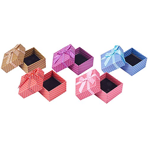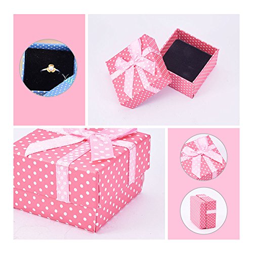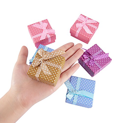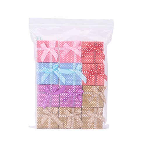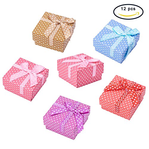 PandaHall 12Pcs Cardboard Small Jewelry Boxes Gift Packaging Boxes with Cotton Filled 51x51x31mm for Earring, Ring, Bracelet and Necklace Mixed Color
