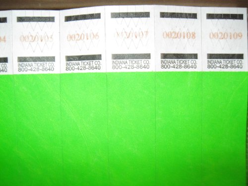 -. Binding : Office Product -. Brand : Indiana Ticket Company -. Feature : 100 Consecutively Numbered Tyvek Wristbands 3/4 inch / Waterproof,durable,great one time use / Made of Dupont-Tyvek materials -. Label : School House Cards -. Manufacturer : School House Cards -. MPN : NG250WB -. PackageQuantity : 1 -. PartNumber : NG250WB -. ProductGroup : Office Product -. ProductTypeName : OFFICE_PRODUCTS -. Publisher : School House Cards -. Studio : School House Cards -. Title : 250 Solid Neon Green Consecutively Numbered Tyvek Wristbands