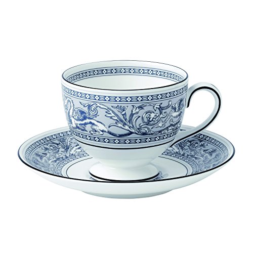 -. Title : Wedgwood Florentine Teacup & Saucer Set, Indigo White/Blue