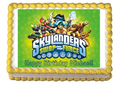 (A Birthday Place)/Stationery Party Supplies/Party Supplies/DIRECT FROM USA/Skylanders Swap Force Edible Image Personalized Cake Topper -- 1/4 Sheet