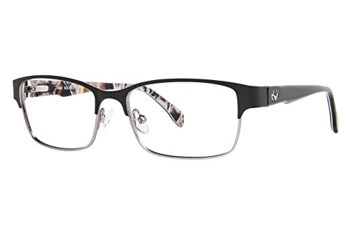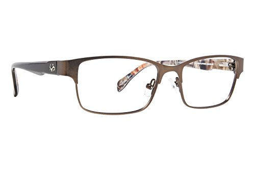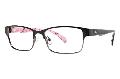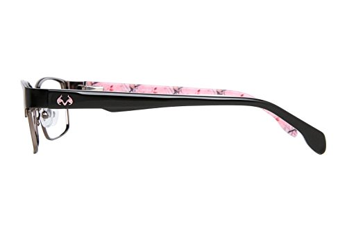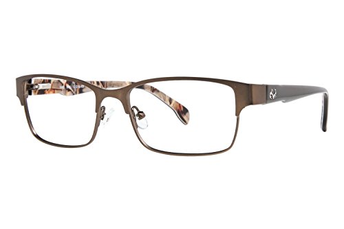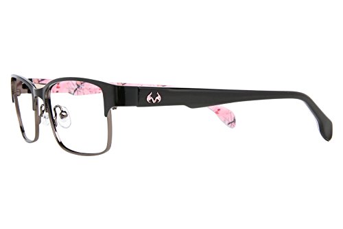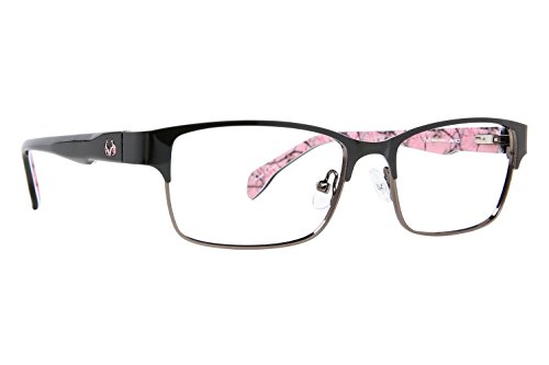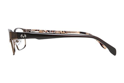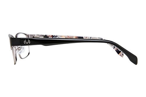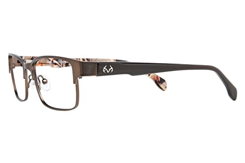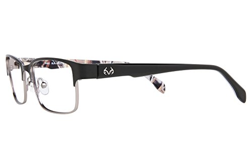Product Description Make every season hunting season with these Realtree eyeglasses. The Realtree R462 is a pair of full rim square frames with a pronounced browline. The solid black temples is accented by a silver Realtree logo and features the signature camo on the interior. Spring hinges Adjustable nose pads Branded hard case included It's a Camo Casual world and Realtree is setting the trends. 0