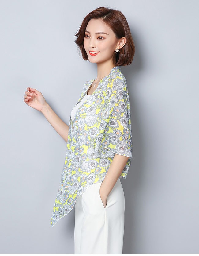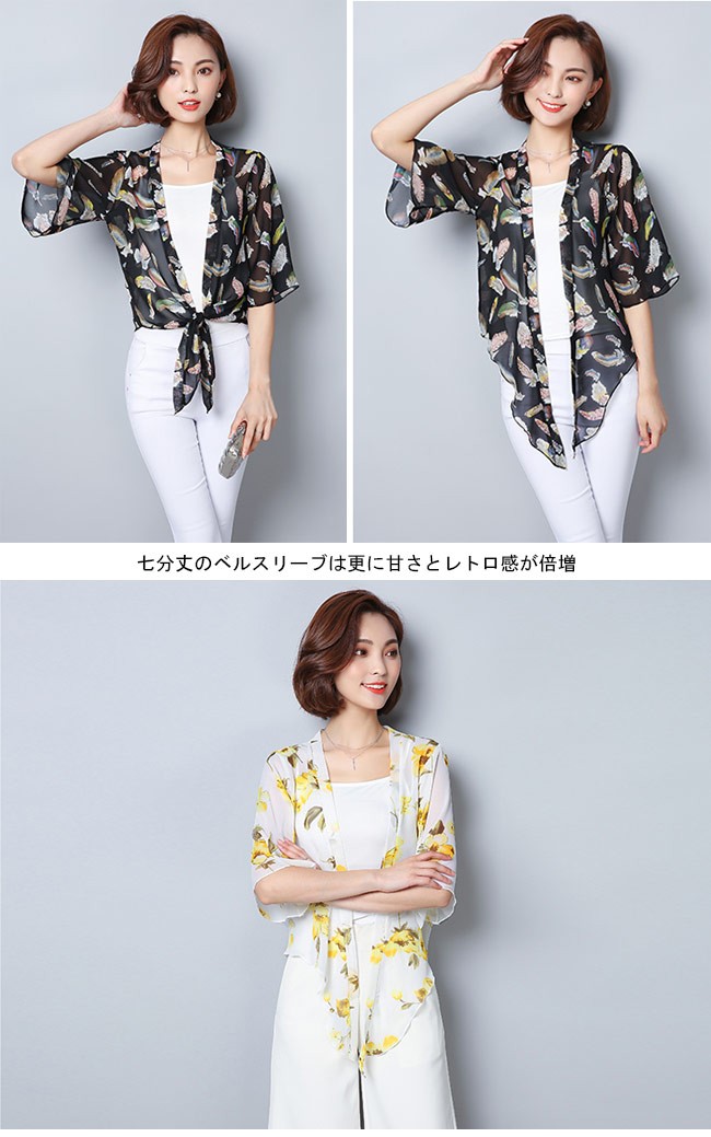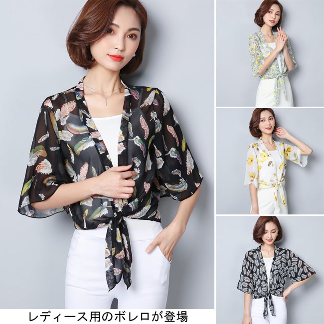 | 商品名 | レディース ボレロ シフォン 七分丈袖 女性用 シフォンシャツ 前開き ノーボタン ライトアウター 夏物 春秋物 クーラー対策 冷房対策 |