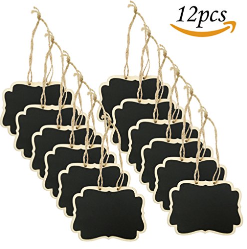 12pcs Mini Hanging Wooden Chalkboards Erasable Double Sided Blackboard with String for Message Board Signs Party Labels Wedding