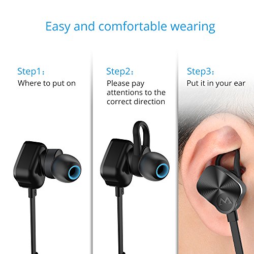 Mpow Bluetooth 4.1 Wireless Sports Headphones In-ear Running Jogging Stereo Earbuds Headsets with 8-Hour Mic Talking Time for iPhone 6s etc-Black