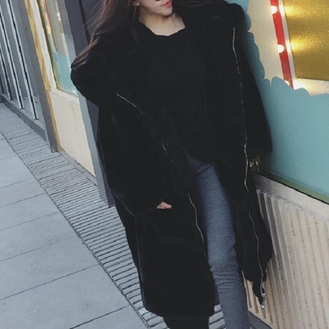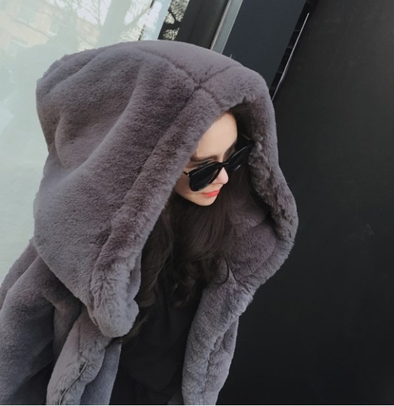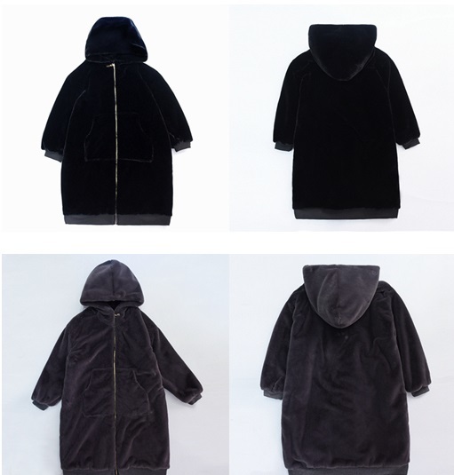 大きめフードが小顔効果をもたらし、ロング丈ならではの縦長シルエットも♪