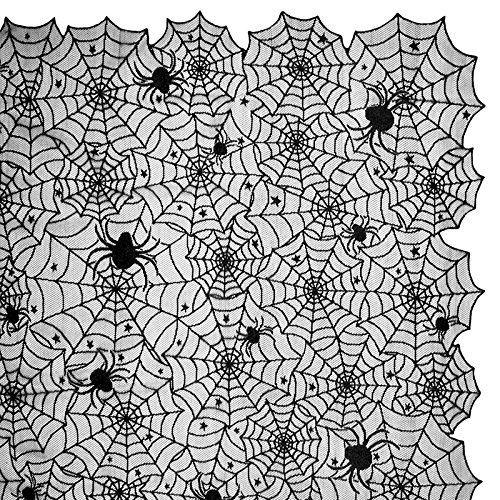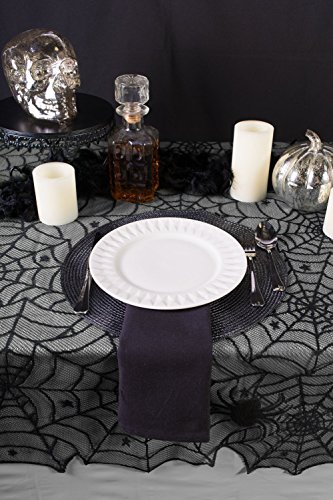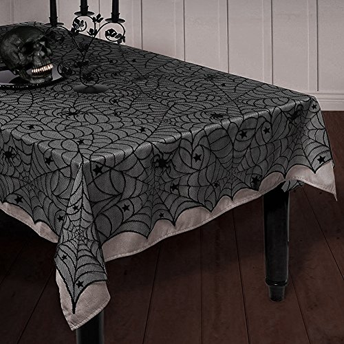 Moolecole 54'' x 72'' Halloween Black Lace Table Cloth Spider Web Tablecloth Mat for Halloween Parties and Dinner Decor