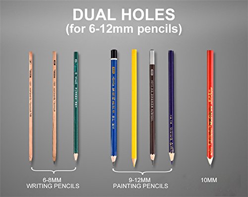 ⚑DOUBLE HOLE DESIGN FOR 6mm~12mm PENCILS – Good for regular and painting colored pencils, even it can be a crayon sharpener. Featuring two separate holes for different pencil diameters: 6-8 mm and 9-12mm, we use mostly two sizes pencils in our whole life, one is 6-8mm, the other is 9-12mm. So we designed this battery operated pencil sharpener fits all size pencils.
