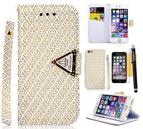 iPhone 6 Plus Case,iPhone 6S Plus Case, GoodPro?? Luxury Fashion [Gorgeous Gold Rhombus Handbag Design](Champagne), Premium PU Leather Wallet Case Flip Cover with Card Holder/ Carrying Strap for Apple iPhone 6 Plus and 6S Plus, Included (Screen Protec