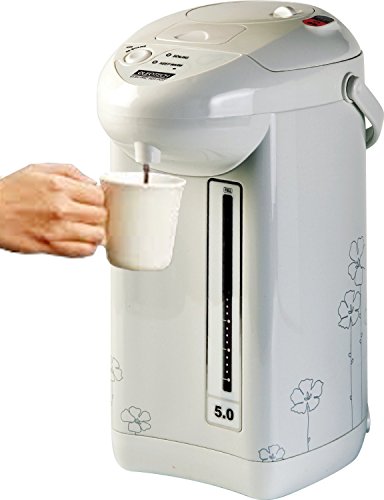 Electric thermo pot boils and dispenses up to 5 quarts of water; Automatically ensures piping hot water round the clock
