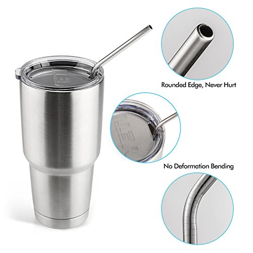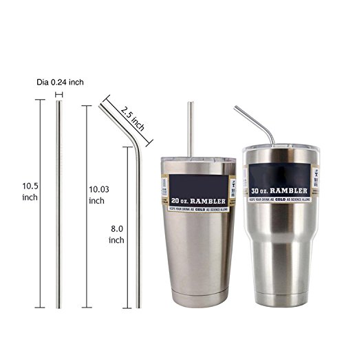 🍸Long Enough - Set of 6 straws with 2 cleaning brushes. 10.5-inch-long stainless-steel drinking straws fit for 20 & 30 oz. Yeti Rambler Tumblers, such as RTIC 30 oz. Tumbler: http://a.co/bBB3tFs