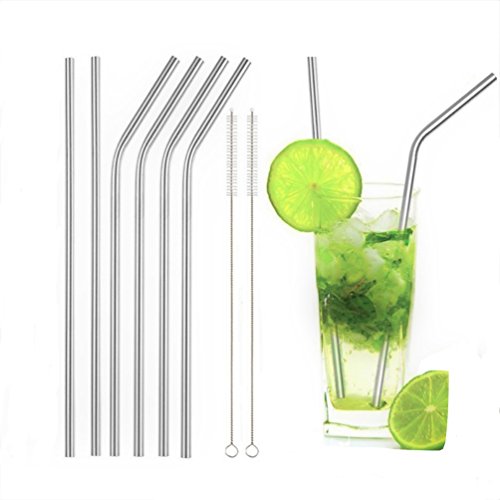 Sosoon Extra Long 10.5'' Reusable Stainless Steel Metal Drinking Straws Set of 6 for 30oz & 20oz Yeti, RTIC or Ozark Trail Ramblers Cups + 2 Free Cleaning Brushes