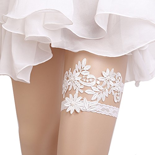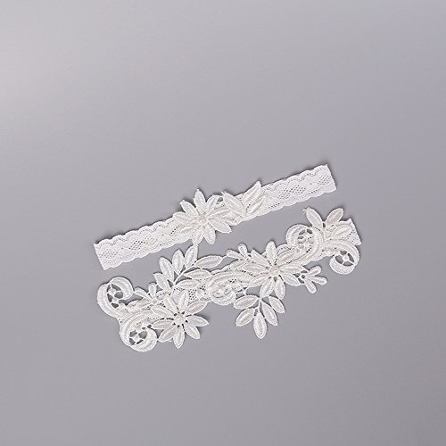 M_Eshop Women Wedding Bridal Garter with Pearl Lace Garter Set (White-1)
