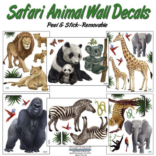Create-A-Mural : Safari Animal Wall Decals- (30) Jungle Animal Wall Stickers For Kids Room Decor