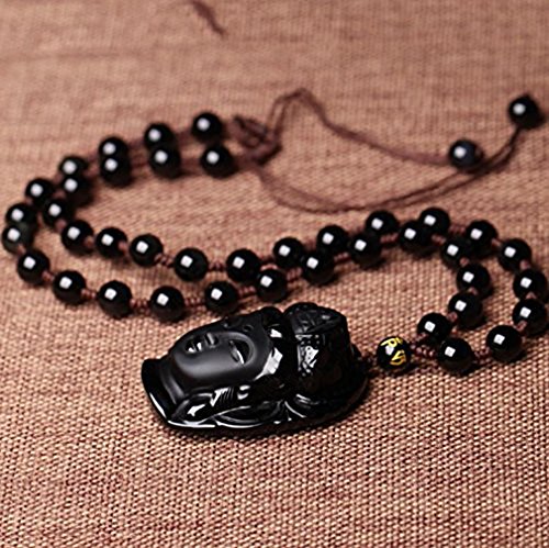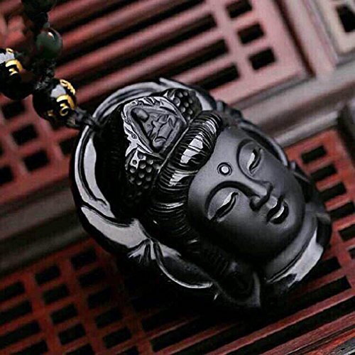 -. Title : Handmade natural Obsidian Buddha head Goddess of Mercy Pendant necklace