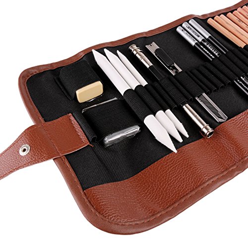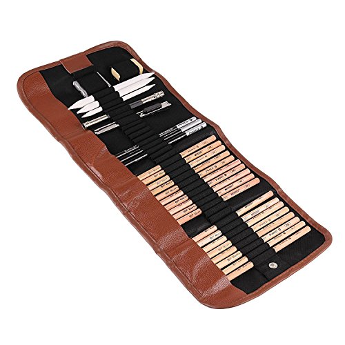 - High Quality Pencil Set: Durable break-resistant metal craft knife + Stylish, lightweight, well-made canvas roll bag + Premium sharpened Pencils + Metal double-end pencil extender.