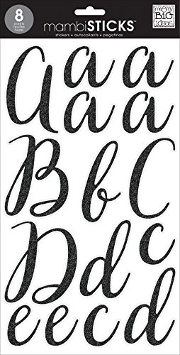 me & my BIG ideas Large Alpha Sticker Victoria Black Lace Up, Cursive Black, Add Glitter