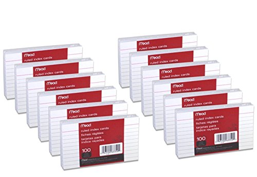 Mead 3 x 5-Inch Index Cards, Ruled, 100 Count, White (63350) Pack Of 12