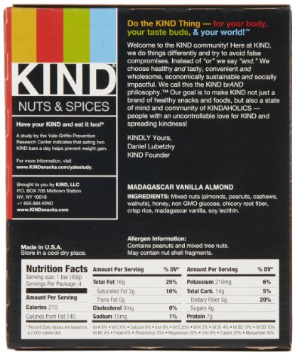 -. Title : KIND Nuts & Spices Bars, Madagascar Vanilla Almond, 1.4 Ounce, 4 Count