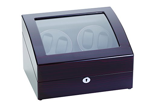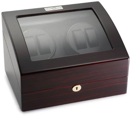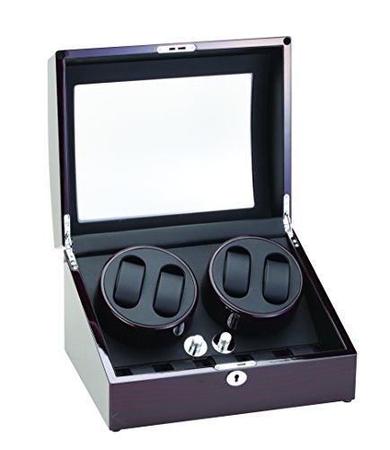 -. Title : Diplomat Ebony Wood Quad Watch Winder with Black Leather Interior and 4 Program Settings
