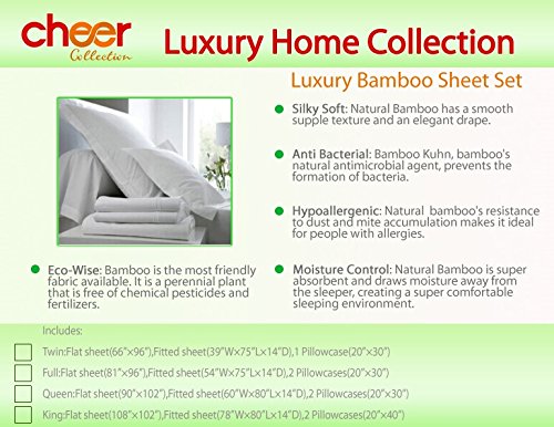 Cheer Collection Silky Soft Luxurious Bamboo Sheet Set, Queen White