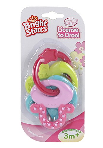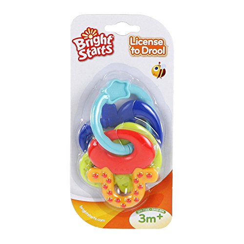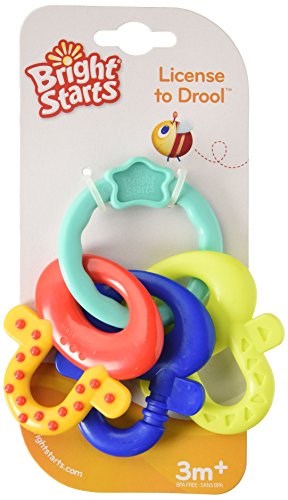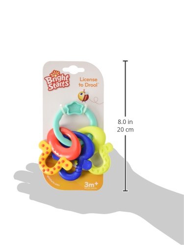 -. Binding : Baby Product -. Brand : Bright Starts -. Department : baby-boys -. Feature : Multiple textures are great for teething baby / Keys are easy for baby to hold / Each key includes a number / Attach Bright Starts fun Links for on-the-go fun -. Label : KIDS II -. Manufacturer : KIDS II -. Model : 8172PARENT -. ProductGroup : Baby Product -. ProductTypeName : BABY_PRODUCT -. Publisher : KIDS II -. ReleaseDate : 2010-04-06 -. Studio : KIDS II -. Title : Bright Starts License to Drool Teether
