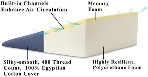 InteVision Foam Wedge Bed Pillow (26" x 25" x 7.5") with, 400 thread count, 100% Egyptian Cotton Cover