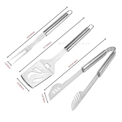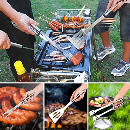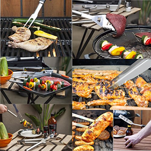 Barbecue Tools are Super Heavy Duty - Strongest most durable grill set will not bend or break when flipping large chunks of meat.Stainless steel material prevents rusting and resistant to scratches.