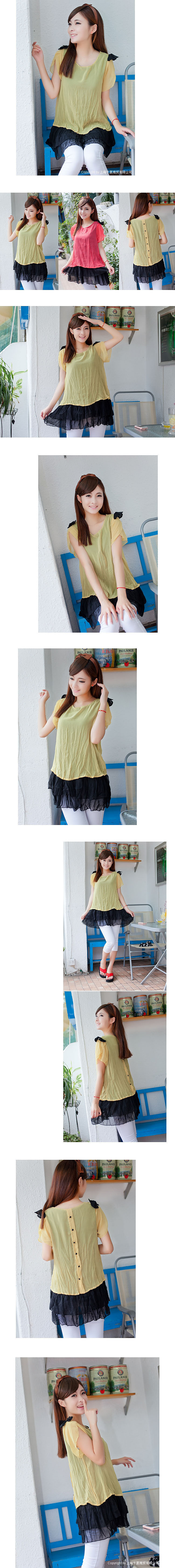 压皱雪纺 肩部蝴蝶结 配以同色蛋糕裙摆 极具时尚感