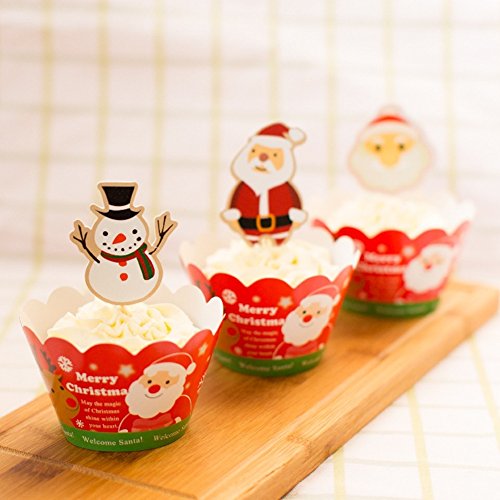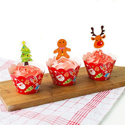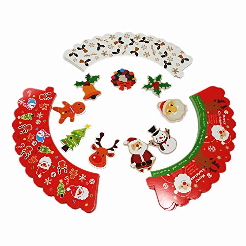 Yunko 72pcs Merry Christmas Decorative Cupcake Wrappers Toppers Muffin Cupcake Decorating Mold Tools Set
