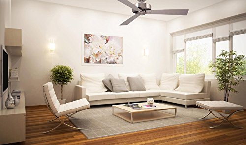The 52 inch keane Ceiling fan, available in brushed Steel and Satin white housing finishes, is setting trends, offering superior performance and a Polished modern design at an economical price point