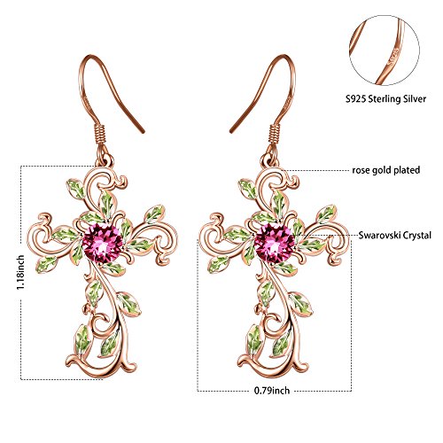 -. Feature : The Series:"The Dream of Eden".Eden is an ideal paradise and spiritual totem for human beings and this design philosophy embodies the emotional exploration and self cognition for family, lovers and themselves. People are eager to return to the innocent, quiet and happy life in this hustle and bustle society and pursuring the tranquil and peaceful world of Eden. / Inspiration:The green leaves symbolize the rebirth and hope.we trust god that he can hear our pious prayer.This faith gives us confidence in the future of life. God bless You. / Ideal Gift:Comes in a pretty box. A holy gift for mom, wife, girl,girlfriend, best friend, daughter or yourself on Christmas,Good Friday,Ester Day, Prayer,Christening,Ordination,Birthday,Anniversary,Celebration,Congratulation,Party. / Specification:necklace Pendant:1.26"(Diameter).Necklace:17.52+1.77 inch(Extend chain), Sterling Silver S925 Prong Dangle Earrings.Environmentally friendly material ,Rose gold/14k yellow gold plated-copper. / Notice: Crystal supplied by Swarovski and skillfully manufactured in our independent workshops.This pendant is NOT a Swarovski product but a piece made with Swarovski Crystals.