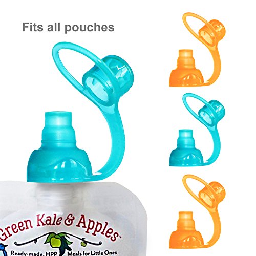 ChooMee Sipn Food Pouch Tops | 100% Silicone | Orange Aqua | 4 CT