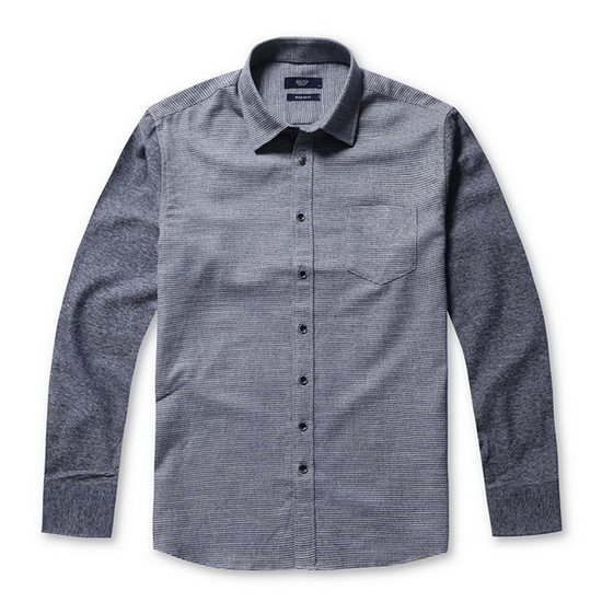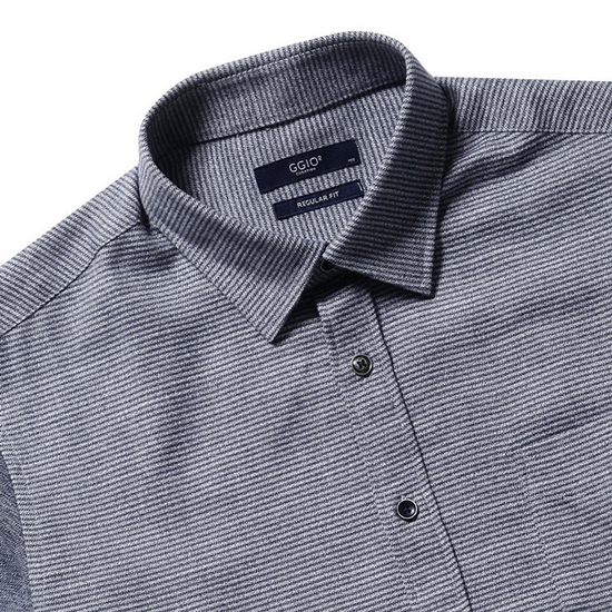 - 스트라이프 조직 믹스 텍스쳐 디자인의 남성 셔츠.