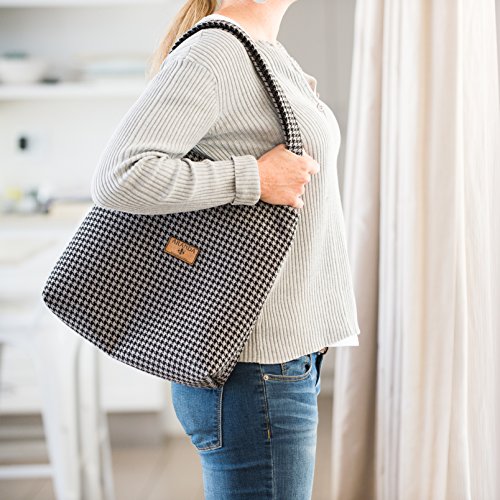 Womens Handbag, Over the Shoulder Tote, ARANDA WEAVE, Houndstooth Design, (14"x15"x2)