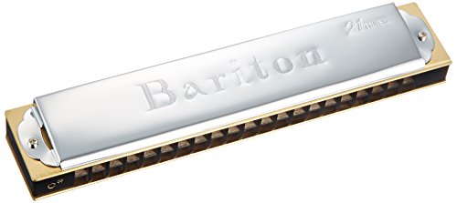 Product DescriptionThis bariton harmonica is one octave lower, it gives thick low sound on ensemble. 21 holes, Key of C-sharp0