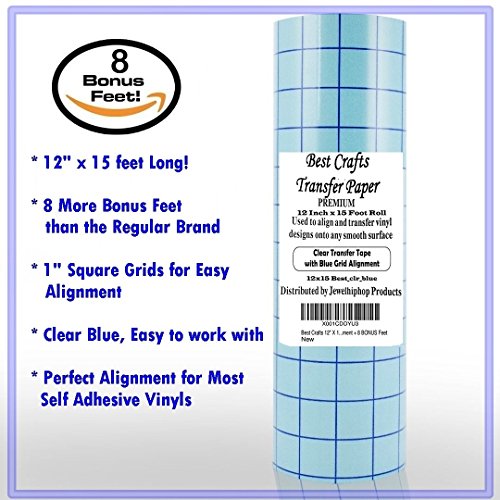 Clear Transfer Paper - 12 Inch X 15 Feet - Use for Cameo, Cricut, Self Adhesive Vinyl Signs, Stickers, Decals Windows Walls Vynil Transfer. Perfect Alignment with Blue Grids by JH-Best Crafts