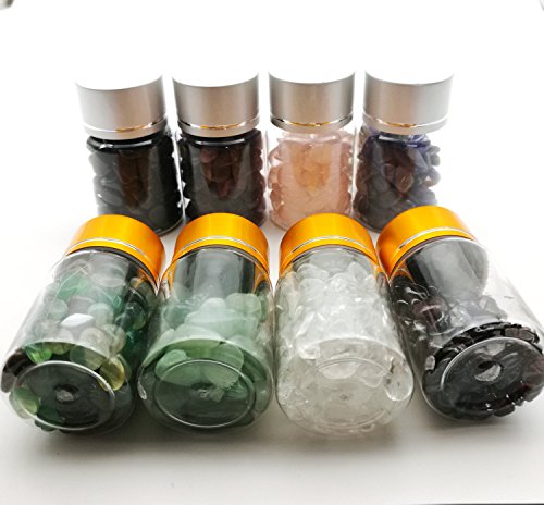 Hengshang 8 Mini gemstone bottles tumbled chips crystal healing gem reiki wicca stones,Total weight: 1 lb