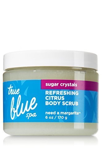 Bath & Body Works True Blue Spa Refreshing Citrus Body Scrub "Need a Margarita" 6 Oz. : This tropical citrus scrub is the vacation your skin needs from looking and feeling landlocked. Sugar exfoliates to sweeten your spa experience balanced with just a little salt (the way you like it), while an exotic oil blend of coconut, almond, avocado, jojoba & more moisturizes and transports you to the tropical island of your choice every time you shower or bathe. * Sugar crystals provide exfoliation, resulting in smooth, glowing skin * Effervescent margarita fragrance to transport you to the tropics * Not tested on animalsFeature
