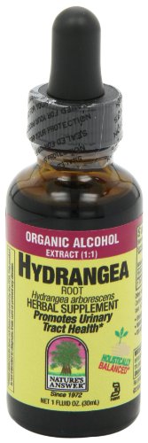 -. Binding : Health and Beauty -. Brand : Nature's Answer -. Department : Health and Beauty>Health and Wellness -. EAN : 0784922585974 -. Feature : 1:1 extract / Promotes urinary tract health / Herbal supplement -. IsAdultProduct : 0 -. IsAutographed : 0 -. IsMemorabilia : 0 -. Label : Nature's Answer -. LegalDisclaimer : * These statements have not been evaluated by the Food and Drug Administration. This product is not intended to diagnose, treat, cure or prevent any disease. ** Always refer to the manufacturer's label on the product for description, recommended dose and precautions. -. Manufacturer : Nature's Answer -. Model : 083000003585 -. MPN : NA0083 -. NumberOfItems : 1 -. PackageQuantity : 1 -. PartNumber : NA0083 -. ProductGroup : Health and Beauty -. ProductTypeName : HEALTH_PERSONAL_CARE -. PublicationDate : 2011-02-09 -. Publisher : Nature's Answer -. Size : 1 oz -. Studio : Nature's Answer -. Title : Nature's Answer Hydrangea Root with Organic Alcohol, 1-Fluid Ounce -. UPC : 784922585974