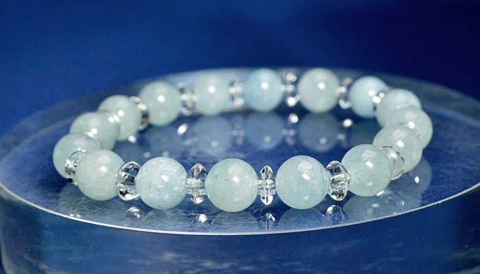 アクアマリン 8ミリ玉 水晶 平珠 3×6ミリ玉 ランク AAA [A~4A 4段階表示] ゴムを使用しております |