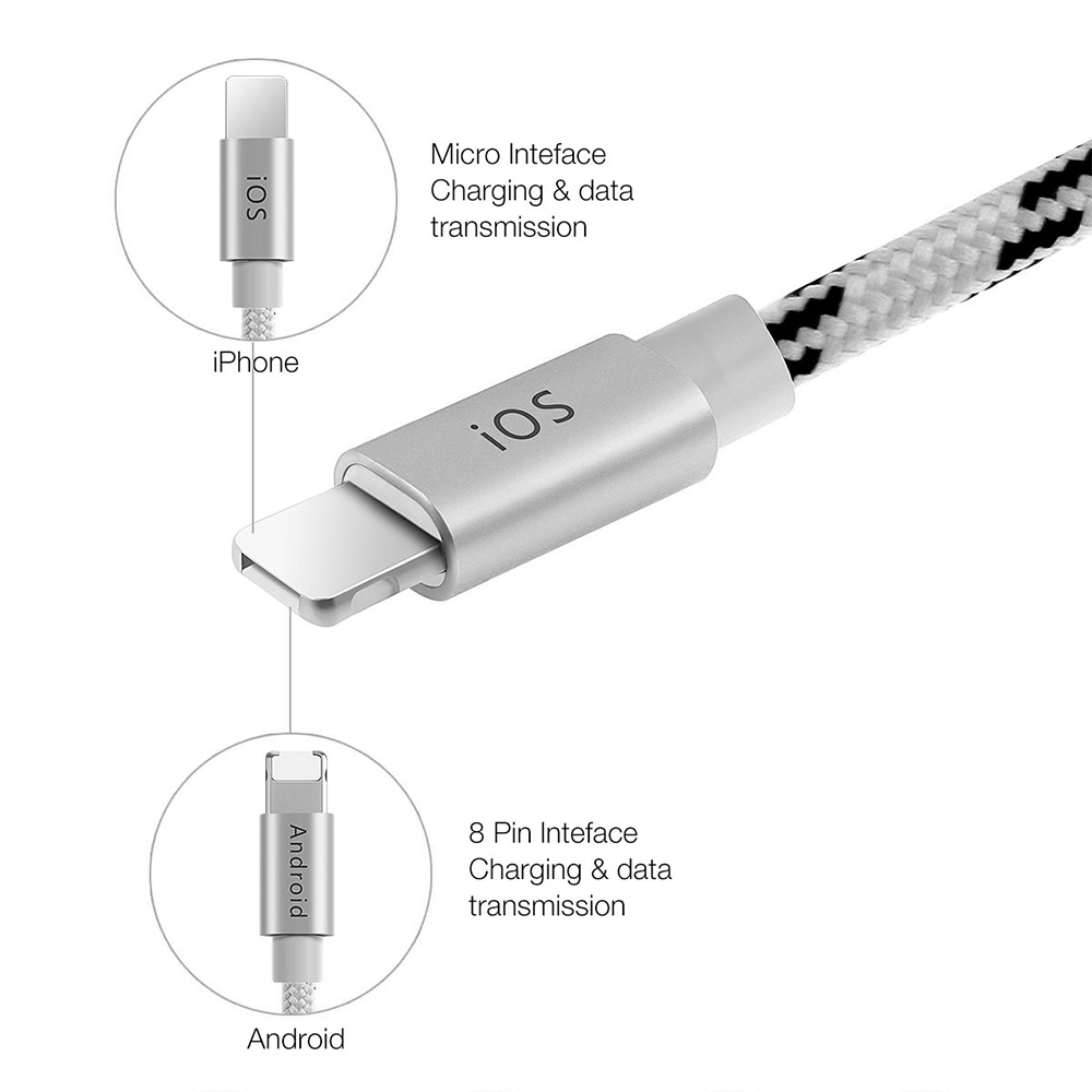 • 2 in 1 8pin and Micro USB are fused together, one cable for two different devices.