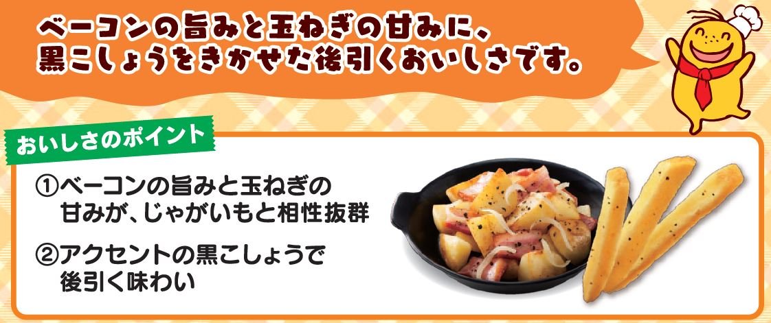 Firm taste of bacon, sweetness of onion excellent compatibility with potatoes.