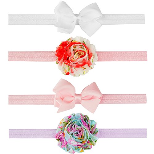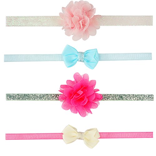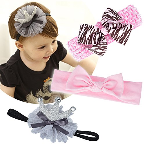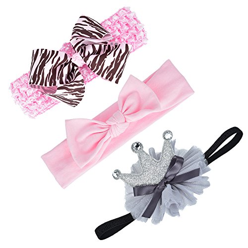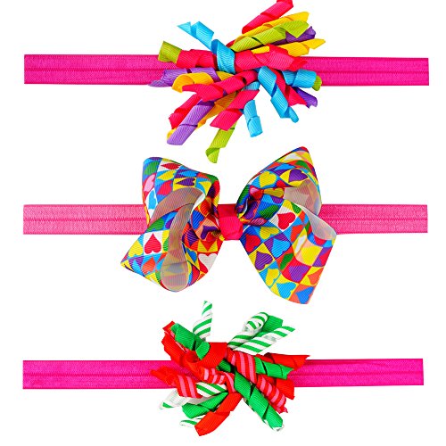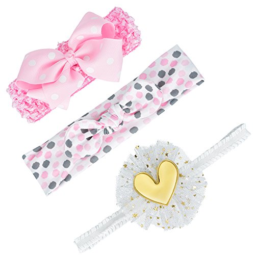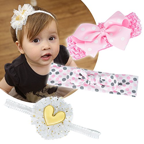 Qino Baby Girls 3-Pack Headbands 3 styles Handmade Elastic HairBands,0-24 Months