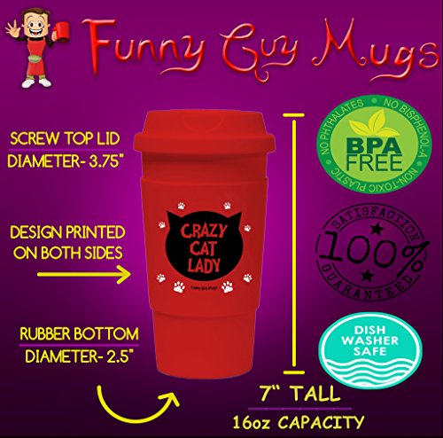 CONTENTS: * 1 BPA Free Plastic Travel Tumbler. 1 Silicone Sleeve * Contents Come New In A Color Gift Box. MATERIAL: * Rubber Bottom * Plastic Screw Top Lid * Double Wall Plastic Body * Double Wall Plastic Body * Silicone Removable Sleeve. Features: * Silicone Sleeve= Reusable, Removable, Eco-Friendly, Dishwasher Safe & Printed On Both Sides * Plastic Tumbler= Double Wall Body, BPA Free Plastic, Rubber Bottom, Screw Top Lid & Machine Washable. SIZING: * Sleeve= Approx 3.5" Tall- 3.5" Diameter * Tumbler= Approx 7" Tall- 2.5" Diameter Base- 3.5" Top Fits In Most Cup Holders. Perfect For The Car, SUV, Van Or Truck. Comfortable Grip That Provides Convenient One-Handed Drinking For Both Left and Right Handed Users. Ideal For Coffee, Tea And Hot Cocoa. Perfect For In The Office Or On The Go. ABOUT FUNNY GUY MUGS: This Tumbler & Sleeve Were Created Exclusively By Funny Guy Mugs. Funny Guy Mugs Is A Trusted Company Ran & Founded By Brothers Whose Mission Is To Create High Quality Products That Put A Smile On Your Face!Feature