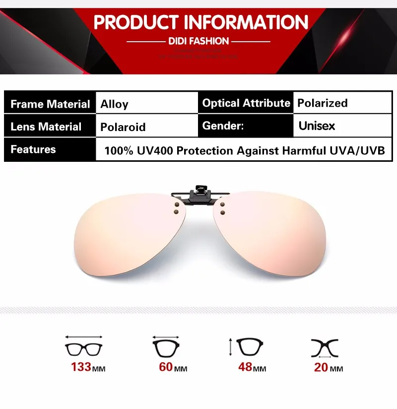 Function:Polarized Glasses Clip Lens 100% UV400 Protection,Against Harmful Rays
