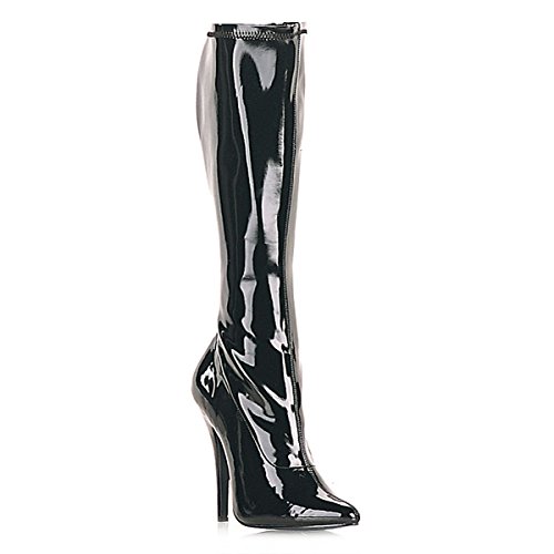 Womens 5 Inch Heels Knee High Boots Pointed Toe Shiny Stretch Black Patent